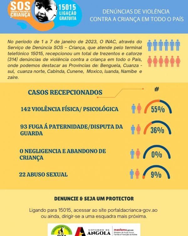 Em casos de violência contra a criança ligue para 15015, linha anónima, gratuita e confidencial ou ainda acesse ao site portaldacrianca.gov.ao